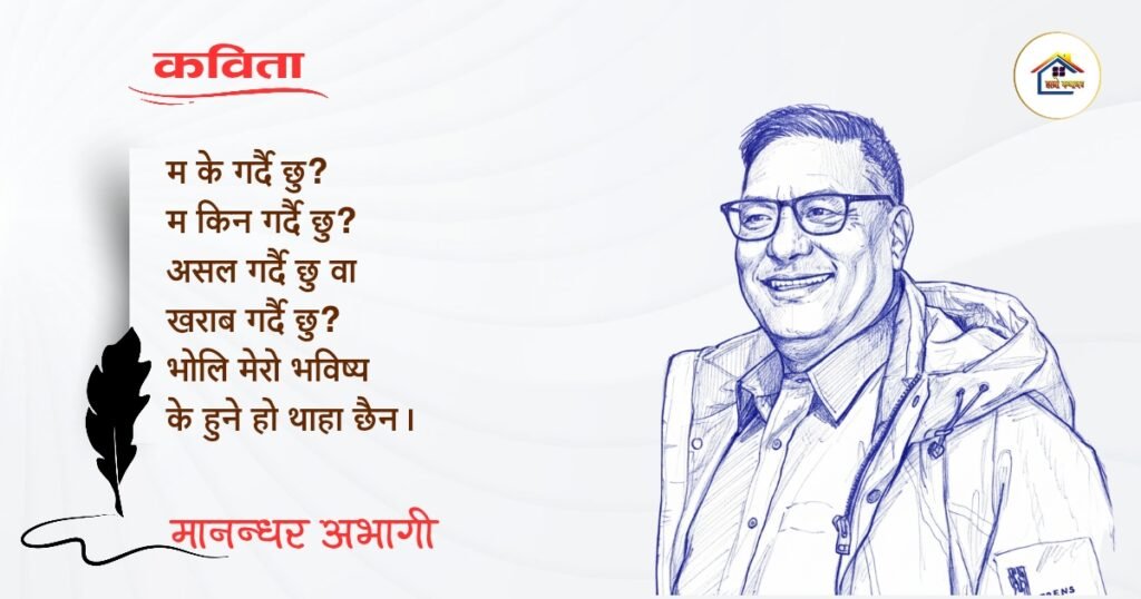 नेपाली भाषा साहित्यलाई माया गरेर यहाँसम्म आइ, यहाँ प्रकाशित लेख/रचनाहरू पढिदिनु भएकोमा तपाईँलाई धेरै धेरै धन्यवाद। तपाईँले भर्खरै माथि पढेको लेख/रचना कस्तो लाग्यो कमेन्ट बक्समा आफ्नो प्रतिक्रिया राख्न सक्नु हुनेछ। आफ्नो मनमा लागेको प्रतिक्रिया राख्न तपाईँ स्वतन्त्र हुनुहुन्छ। यदि तपाईँ पनि नेपाली भाषा साहित्यमा कलम चलाउनु हुन्छ भने आफ्नो छोटो परिचय र एक प्रति अनुहार चिनिने तस्बिर सहित आफ्ना लेख/रचनाहरू हामीलाई hamrokathaghar@gmail.com मा पठाउन सक्नु हुनेछ। अन्य कुनै पनि जानकारीका लागि +९१८७३८०९३५७३ नम्बरमा ह्वाट्सएप गर्न सक्नु हुनेछ। धन्यवाद । नोट: यहाँ प्रकाशित कुनै पनि लेख/रचनाहरू लेखकको वा 'हाम्रो कथा घर' को अनुमति बिना कुनै पनि माध्यमबाट प्रकाशन प्रसारण गर्न पाइने छैन । अन्यथा, यस्तो गरिएको पाएमा प्रचलित कानुन बमोजिम कारबाही गरिने जानकारी गराउँदछौ।