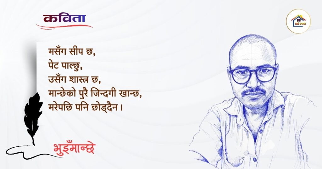 नेपाली भाषा साहित्यलाई माया गरेर यहाँसम्म आइ, यहाँ प्रकाशित लेख/रचनाहरू पढिदिनु भएकोमा तपाईँलाई धेरै धेरै धन्यवाद। तपाईँले भर्खरै माथि पढेको लेख/रचना कस्तो लाग्यो कमेन्ट बक्समा आफ्नो प्रतिक्रिया राख्न सक्नु हुनेछ। आफ्नो मनमा लागेको प्रतिक्रिया राख्न तपाईँ स्वतन्त्र हुनुहुन्छ। यदि तपाईँ पनि नेपाली भाषा साहित्यमा कलम चलाउनु हुन्छ भने आफ्नो छोटो परिचय र एक प्रति अनुहार चिनिने तस्बिर सहित आफ्ना लेख/रचनाहरू हामीलाई hamrokathaghar@gmail.com मा पठाउन सक्नु हुनेछ। अन्य कुनै पनि जानकारीका लागि +९१८७३८०९३५७३ नम्बरमा ह्वाट्सएप गर्न सक्नु हुनेछ। धन्यवाद । नोट: यहाँ प्रकाशित कुनै पनि लेख/रचनाहरू लेखकको वा 'हाम्रो कथा घर' को अनुमति बिना कुनै पनि माध्यमबाट प्रकाशन प्रसारण गर्न पाइने छैन । अन्यथा, यस्तो गरिएको पाएमा प्रचलित कानुन बमोजिम कारबाही गरिने जानकारी गराउँदछौ।