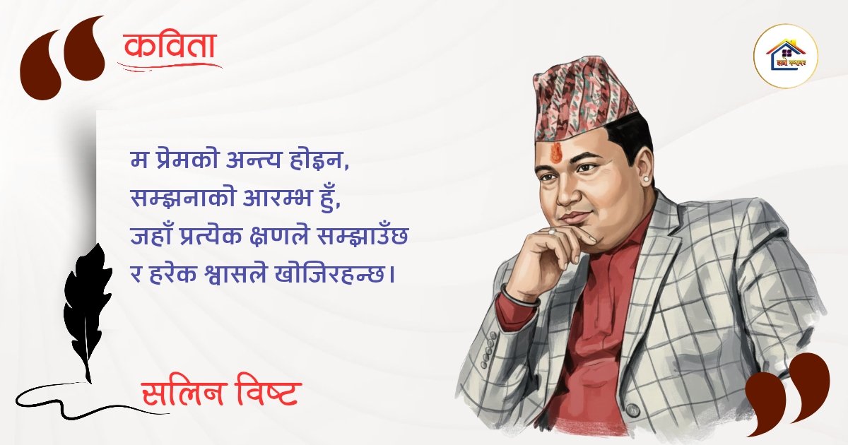 नेपाली भाषा साहित्यलाई माया गरेर यहाँसम्म आइ, यहाँ प्रकाशित लेख/रचनाहरू पढिदिनु भएकोमा तपाईँलाई धेरै धेरै धन्यवाद। तपाईँले भर्खरै माथि पढेको लेख/रचना कस्तो लाग्यो कमेन्ट बक्समा आफ्नो प्रतिक्रिया राख्न सक्नु हुनेछ। आफ्नो मनमा लागेको प्रतिक्रिया राख्न तपाईँ स्वतन्त्र हुनुहुन्छ। यदि तपाईँ पनि नेपाली भाषा साहित्यमा कलम चलाउनु हुन्छ भने आफ्नो छोटो परिचय र एक प्रति अनुहार चिनिने तस्बिर सहित आफ्ना लेख/रचनाहरू हामीलाई hamrokathaghar@gmail.com मा पठाउन सक्नु हुनेछ। अन्य कुनै पनि जानकारीका लागि +९१८७३८०९३५७३ नम्बरमा ह्वाट्सएप गर्न सक्नु हुनेछ। धन्यवाद । नोट: यहाँ प्रकाशित कुनै पनि लेख/रचनाहरू लेखकको वा 'हाम्रो कथा घर' को अनुमति बिना कुनै पनि माध्यमबाट प्रकाशन प्रसारण गर्न पाइने छैन । अन्यथा, यस्तो गरिएको पाएमा प्रचलित कानुन बमोजिम कारबाही गरिने जानकारी गराउँदछौ।