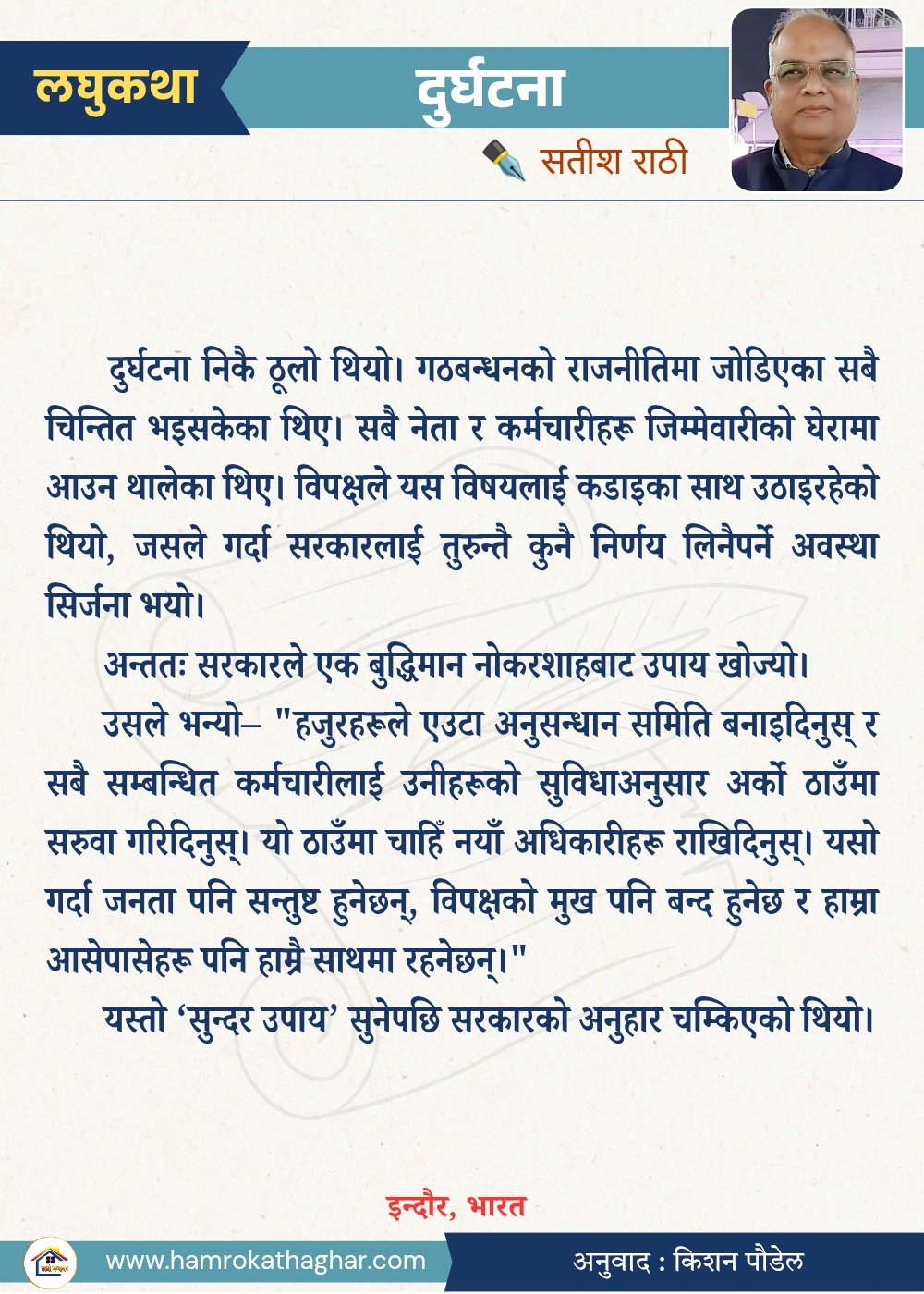 अनूदित लघुकथा किशन पाैडेल पोस्टरमा स्मार्ट लघुकथा