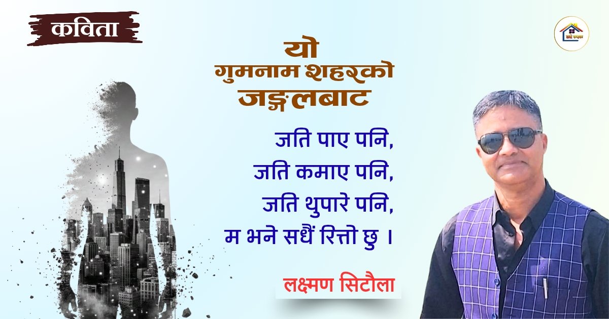 नेपाली भाषा साहित्यलाई माया गरेर यहाँसम्म आइ, यहाँ प्रकाशित लेख/रचनाहरू पढिदिनु भएकोमा तपाईँलाई धेरै धेरै धन्यवाद। तपाईँले भर्खरै माथि पढेको लेख/रचना कस्तो लाग्यो कमेन्ट बक्समा आफ्नो प्रतिक्रिया राख्न सक्नु हुनेछ। आफ्नो मनमा लागेको प्रतिक्रिया राख्न तपाईँ स्वतन्त्र हुनुहुन्छ। यदि तपाईँ पनि नेपाली भाषा साहित्यमा कलम चलाउनु हुन्छ भने आफ्नो छोटो परिचय र एक प्रति अनुहार चिनिने तस्बिर सहित आफ्ना लेख/रचनाहरू हामीलाई hamrokathaghar@gmail.com मा पठाउन सक्नु हुनेछ। अन्य कुनै पनि जानकारीका लागि +९१८७३८०९३५७३ नम्बरमा ह्वाट्सएप गर्न सक्नु हुनेछ। धन्यवाद । नोट: यहाँ प्रकाशित कुनै पनि लेख/रचनाहरू लेखकको वा 'हाम्रो कथा घर' को अनुमति बिना कुनै पनि माध्यमबाट प्रकाशन प्रसारण गर्न पाइने छैन । अन्यथा, यस्तो गरिएको पाएमा प्रचलित कानुन बमोजिम कारबाही गरिने जानकारी गराउँदछौ।