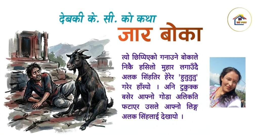 अलक सिंहलाई त्यो भगवतीलाई चढाइएको बोकासित निकै रिस उठ्यो । यो समाजले आफूलाई ‘नामर्द’ भनेर गिज्याएझैँ उसले आफ्नो लिङ्ग देखाएर आफूलाई गिज्याएको महसुस गर्यो अलक सिंहले । आफ्नो लिङ्ग देखाउँदै ‘हुतुतु’ गरेर हाँस्ने त्यो बोकाको अनुहारमा अलक सिंहले आफ्नो जारलाई देख्यो । आफ्नो स्वास्नी लाने जारले आफैँलाई हुत्तिहारा र नामर्द भनेर गिज्याएझैँ लाग्यो उसलाई त्यो बोका देखेर । हुने भए उसलाई तत्काल त्यहीँ दुई टुक्रा पारेर छिनाइदिऊँ जस्तो लाग्यो । अलक सिंह बिस्तारै उठेर त्यो बोकालाई बेस्सरी गाली गर्यो । कुटौँलाझैँ गरेर झम्टियो । अलक सिंहको गाली र झम्टाइले त्यो बोका एक रत्ति पनि डराएन । उल्टै हाँसेर गिज्यायो ।