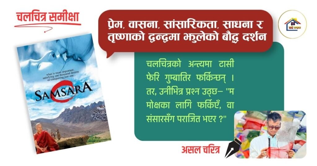 इटालियन निर्देशक पान नलिन (Pan Nalin) द्वारा निर्देशित तिब्बती चलचित्र “संसार” (Samsara, 2001) ले पूर्वीय र पाश्चात्य आध्यात्मिक तथा सांसारिक द्वन्द्वलाई दर्शाउने गहिरो प्रयास गरेको छ । यो चलचित्र एक तिब्बती बौद्ध भिक्षुको कथामा आधारित छ, जसले निर्वाण (Nirvana/मोक्ष) र संसार (Samsara/भौतिक जीवन) बीचको सङ्घर्ष अनुभव गर्छ । संस्कृत शब्द “संसार” (Samsara) को अर्थ हो— “जन्म, मृत्यु र पुनर्जन्मको चक्र ।” चलचित्रमा यो चक्र नायक टासीको भित्री यात्राको प्रतिनिधित्व हो । तिनको जीवन साधना र तृष्णाको द्वन्द्वमा झुलेको हुन्छ ।